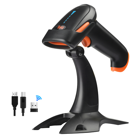 Tera Pro-escáner de código de barras inalámbrico, 2D, QR, con pantalla de cuenta de cuna, velocidad de escaneo rápida, alta resolución, HW0008