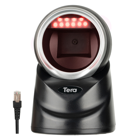 Tera 1D 2D QR supermercado escritorio omnidireccional manos libres USB 2,0 plataforma de escaneo con cable escáner de código de barras modelo 9100